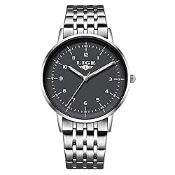 LIGE Relojes para Hombre Acero Inoxidable Deportivos Cuarzo Cuarzo Analógico Reloj de Pulsera Moda Impermeables Hombres