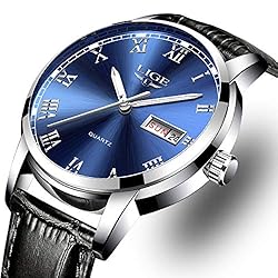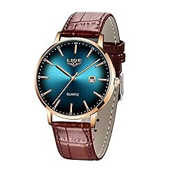 Relojes LIGE para Hombre Ultrafino Impermeable Analógico con Fecha de Cuarzo Correa de Cuero Reloj de Pulsera para Hombre