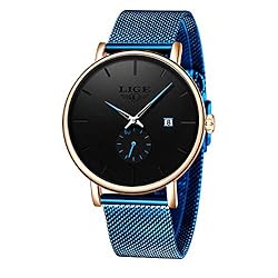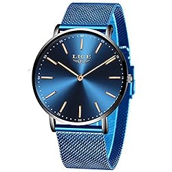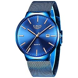 LIGE Hombres Reloj Ultra Delgado Azul Reloj De Cuarzo Analógico De los Hombres Moda Acero Inoxidable Impermeable Reloj De Correa De Malla …