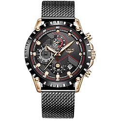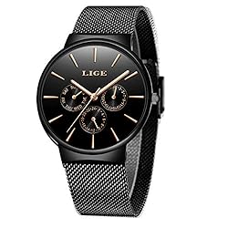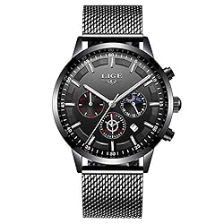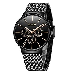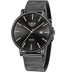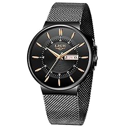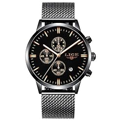 LIGE Relojes Hombre Moda Impermeable Cuarzo Analógico Reloj para Hombre Negocio Vestido con Acero Inoxidable Negro Banda de Malla …