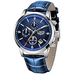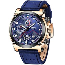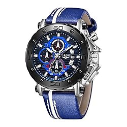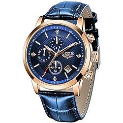LIGE Reloj Deportivo Impermeable para Hombre Reloj Marca Cronógrafo de Cuero de Moda Azul Militar Fecha Reloj Hombre