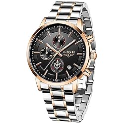 LIGE Reloj para Hombre Elegante Moda Cronógrafo Acero Inoxidable Reloj de Pulsera Deportivo Cuarzo Analógico Impermeable Multifunción Casual Reloj