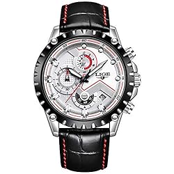 LIGE Relojes para Hombre Acero Inoxidable Cronógrafo Moda Deportes Impermeable Banda de Cuero Analogicos Fecha de Pulsera Regalo Elegante