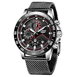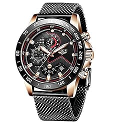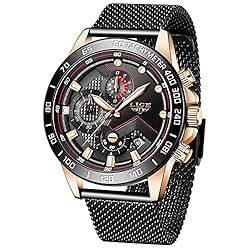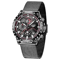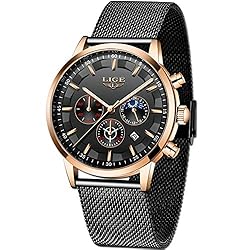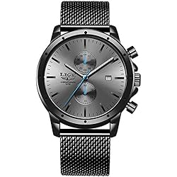 Relojes para Hombres,LIGE Acero Inoxidable Impermeable Reloj Analógico de Cuarzo Cronógrafo Banda de Malla Milanesa Esfera Fecha Moda Casual Relojes de Pulsera