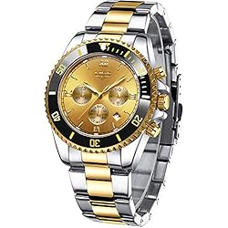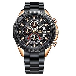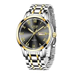 LIGE – Reloj de pulsera para hombre de acero inoxidable, color dorado, negro, resistente al agua, cronógrafo, elegante, fecha, calendario, deportivo, de cuarzo