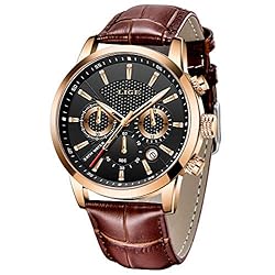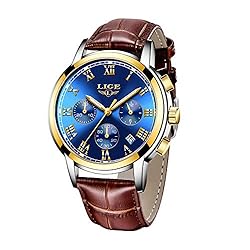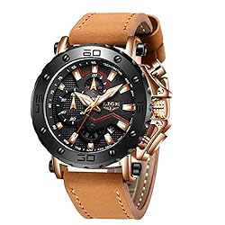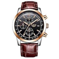 LIGE Reloj para Hombre Elegante Resistente al Agua con Movimiento de Cuarzo Analógico Cronógrafo Relojes Deportivos Informales de Cuero Correa Marrón