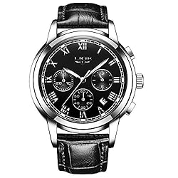 LIGE Reloj Hombre Elegant Cronógrafo Deportiva Impermeable Uarzo Analógico Acero Inoxidable Clásico Negro Cuero Calendario Reloj