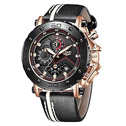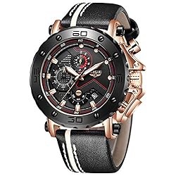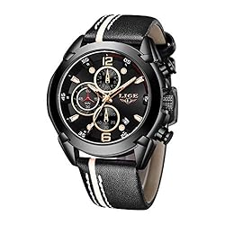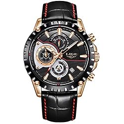 LIGE Relojes para Hombre Militares Deportivos Moda Analógico de Cuarzo Impermeable Cronógrafo Negro Esfera Grande Piel Reloj de Pulsera