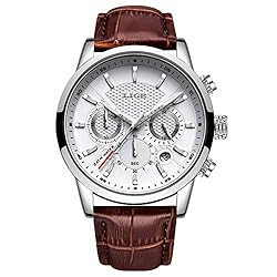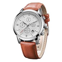 Relojes Hombre Relojes de Pulsera Marea Cronometro Impermeable Fecha Calendario Analogicos Cuarzo Relojes de Hombre Deportivo Casual Clásicos Multifunción con Correa de Cuero