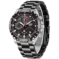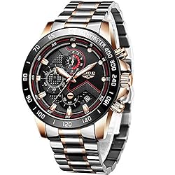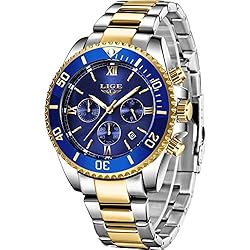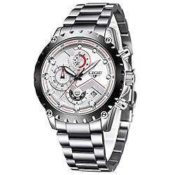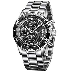 Reloj LIGE para Hombre Deporte Cronógrafo Analógico Cuarzo Impermeable Relojes de Pulsera con Correa de Acero Inoxidable