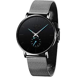 LIGE Relojes para Hombre Impermeable Moda Analógica Simple Quart Slim Relojes Minimalistas para Hombres Vestido Deportivo Reloj de Pulsera Informal con Banda de Acero Inoxidable Negro