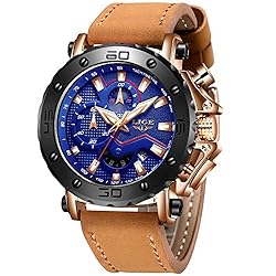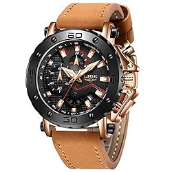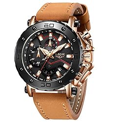 LIGE Relojes para Hombres Moda Militar Impermeable Deporte Reloj Analógico Cuarzo Marrón Cronógrafo Cuero Negocio Reloj