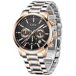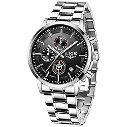 LIGE Reloj para Hombre Acero Inoxidable Impermeable Analógico de Cuarzo Movimiento Deportivo Cronógrafo Moda Empresarial Fecha Calendario Resistente Arañazos Relojes de Pulsera