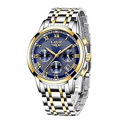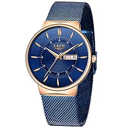 Relojes para Hombres Impermeable Acero Inoxidable Reloj Analógico de Cuarzo para Hombre Masculino Marca LIGE Vestido de Negocios Reloj de Pulsera Hombre Reloj Azul Dorado