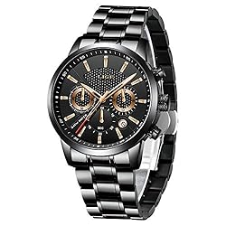 LIGE Reloj para Hombre Cronógrafo Correa de Acero Inoxidable Impermeable Deportivo Negocio Casual Negro para Caballero