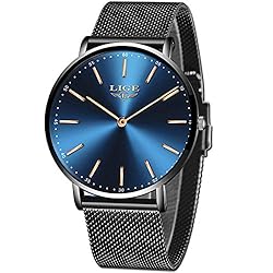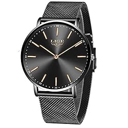 LIGE Hombre Relojes Unisex Mujer Casual Ultra Delgado Reloj Simple Negro Cuarzo Analógico 3ATM Impermeable para Masculino Minimalista Acero Malla Gents Hombre Reloj de Pulsera