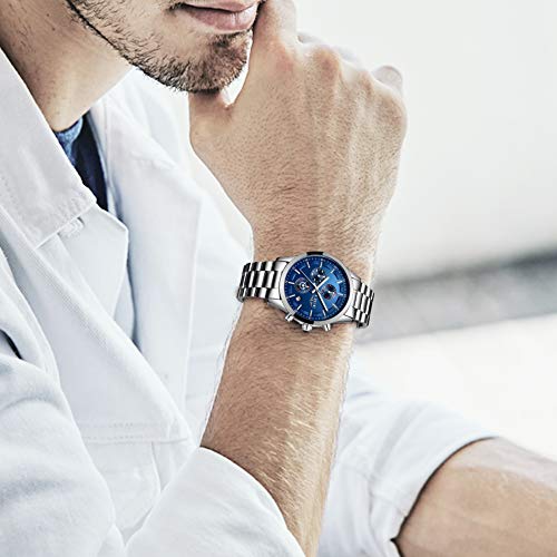 ● Diseño multifunción: tres subesferas multifunción que soportan cronómetro, calendario de fecha y fase lunar; movimiento de cuarzo japonés y batería proporcionan una hora exacta.
