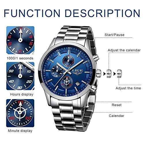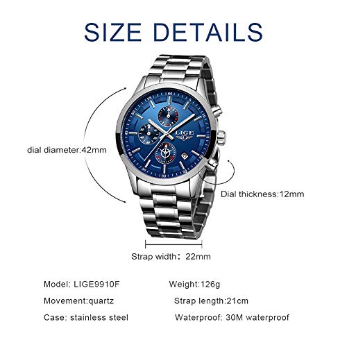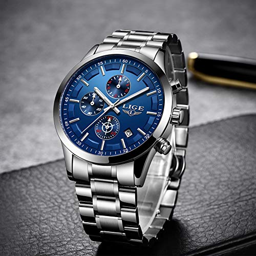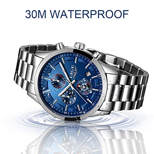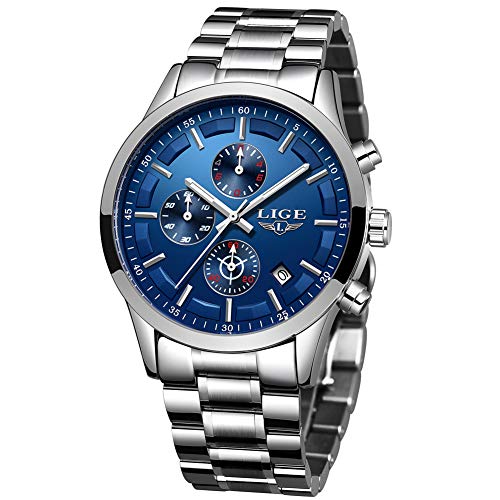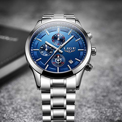 LIGE Militray – Reloj de pulsera para hombre, resistente al agua, de acero inoxidable, analógico, de cuarzo, reloj de pulsera