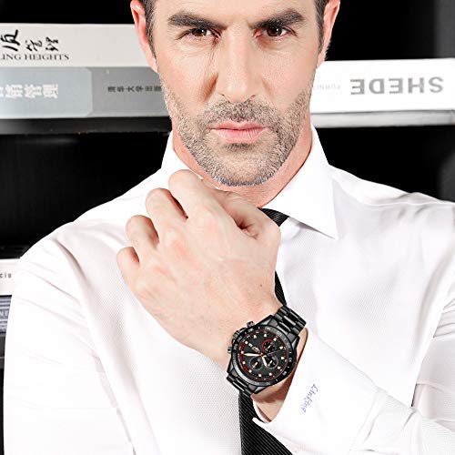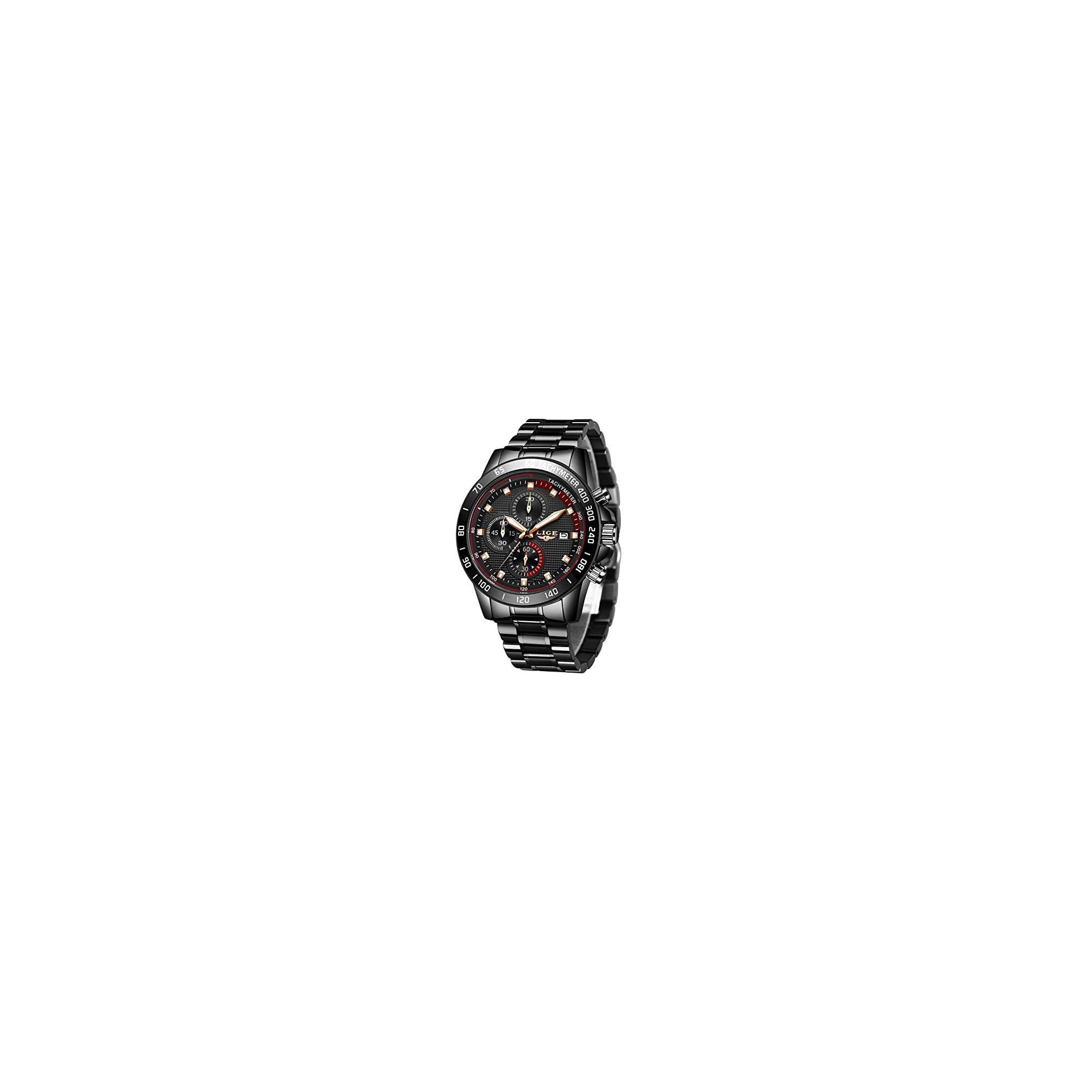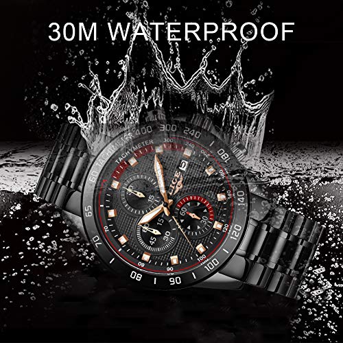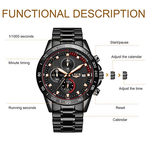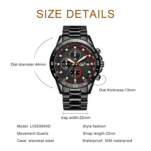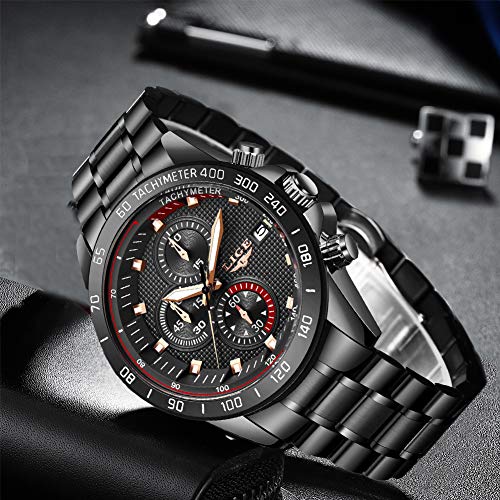 LIGE Reloj para Hombre Cronógrafo Correa de Acero Inoxidable Impermeable Deportivo Negocio Casual Negro para Caballero
