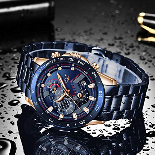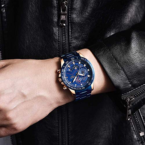 -Design Diseño de lujo: esfera redonda multifunción con temporizador, calendario, manecillas luminosas, pantalla de cronómetro. Este reloj de pulsera está bien empaquetado en una elegante y exquisita caja de reloj negro, adecuado para todas las ocasiones, el reloj es una excelente opción de regalo para sus seres queridos para el Día de San Valentín, Navidad, cumpleaños, aniversario y Día de la Madre.