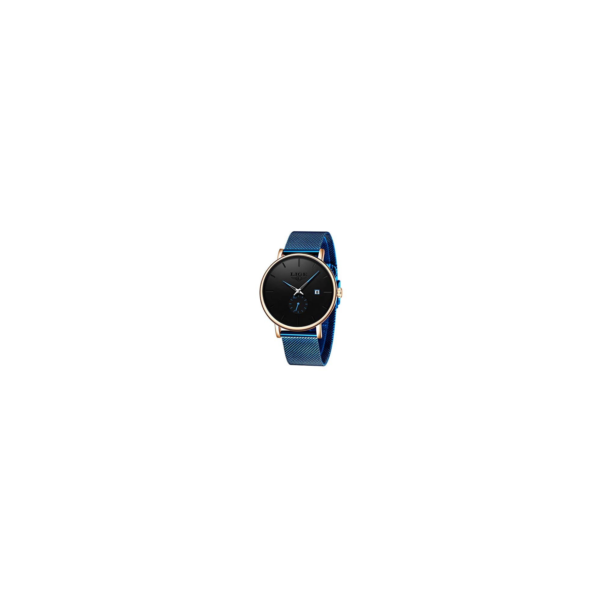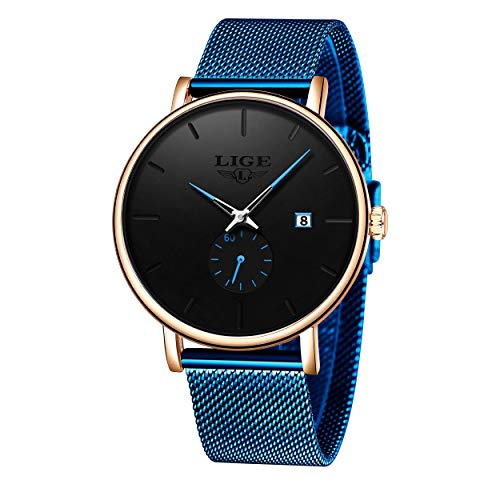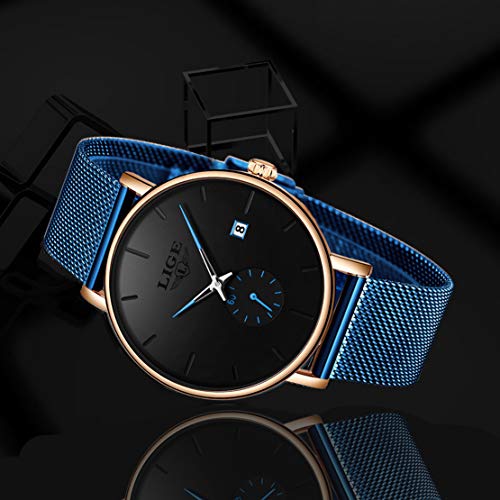 LIGE Relojes Hombres Impermeable Deportes Cuarzo Analógico Reloj Hombre Moda Negro Acero Inoxidable Malla