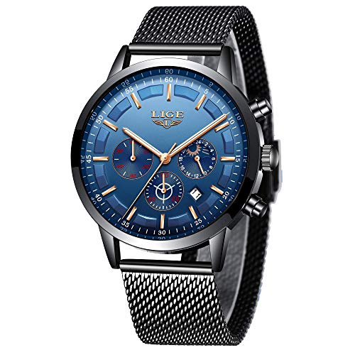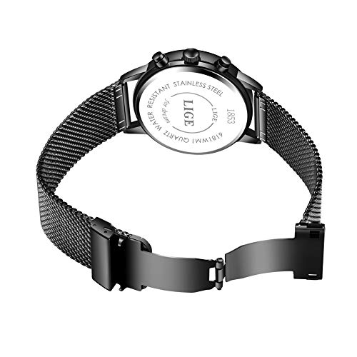 LIGE Relojes para Hombre Acero Inoxidable Deportivos Cuarzo Cuarzo Analógico Reloj de Pulsera Moda Impermeables Hombres