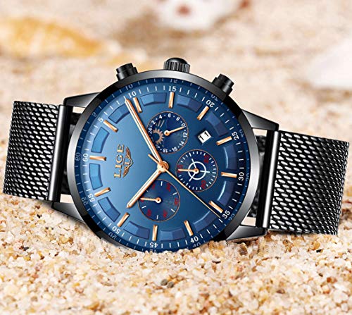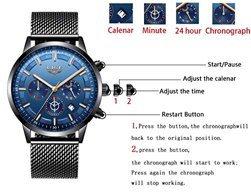 Compra sin preocupaciones: cada relojes hombre LIGE viene con una garantía de 24 meses y 90 días 100% devolución de dinero completa garantía de reembolso. Viene con una elegante caja negra y una microfibra.