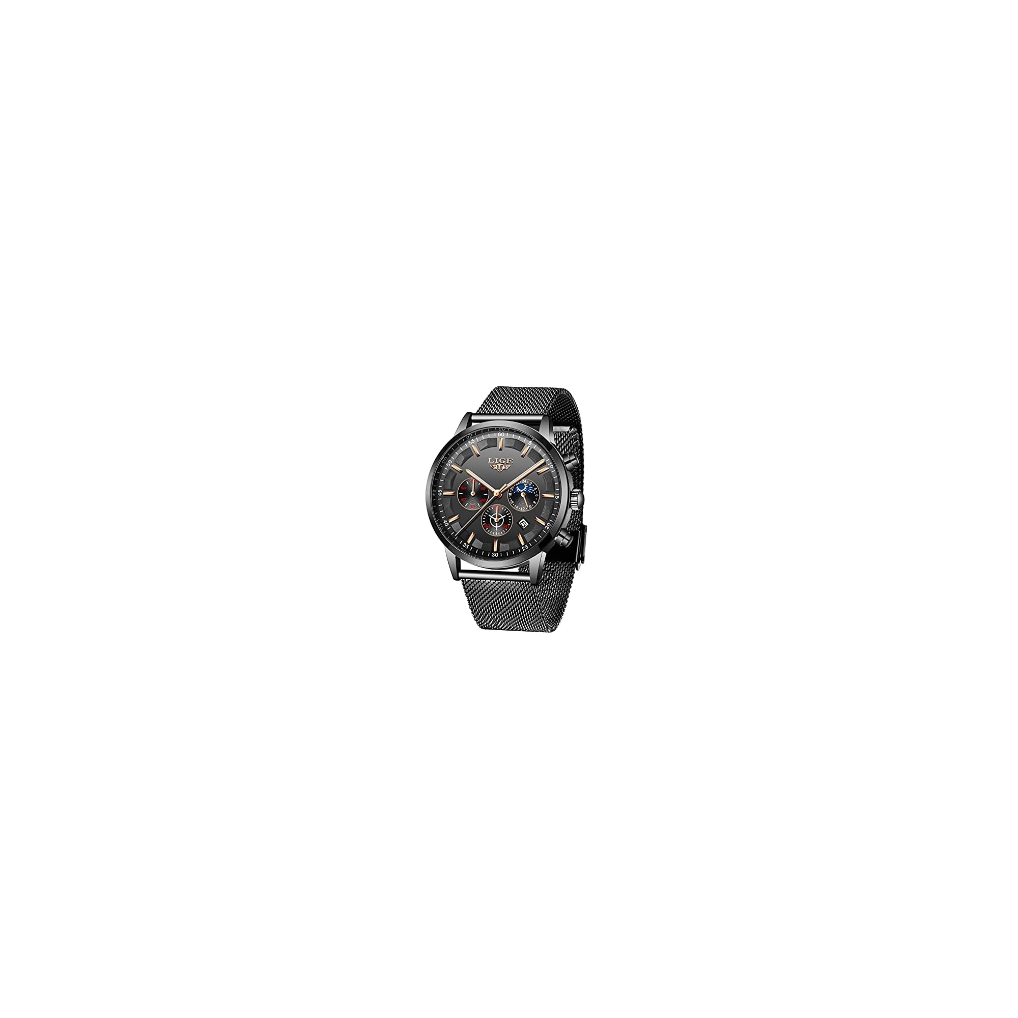 LIGE Relojes para Hombre Deportivos Cronógrafo Impermeable Relojes de Malla de Acero Inoxidable Vestido de Negocios con Fase Lunar Reloj de Pulsera de Cuarzo Analógico
