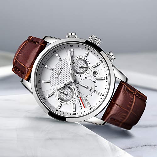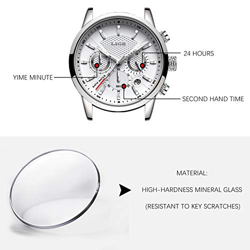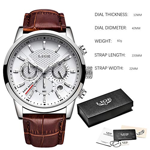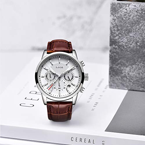 LIGE Relojes para Hombre Fashion Business Reloj de Cuarzo Caballero Reloj Deportivo Blanco Cronógrafo clásico Impermeable