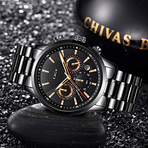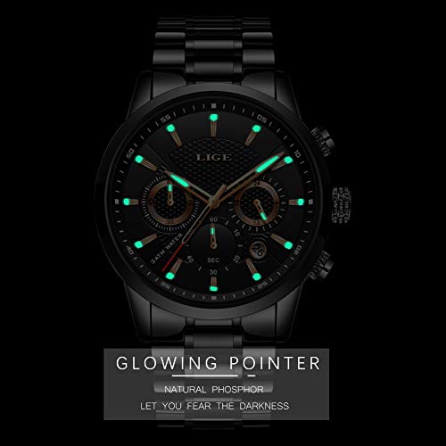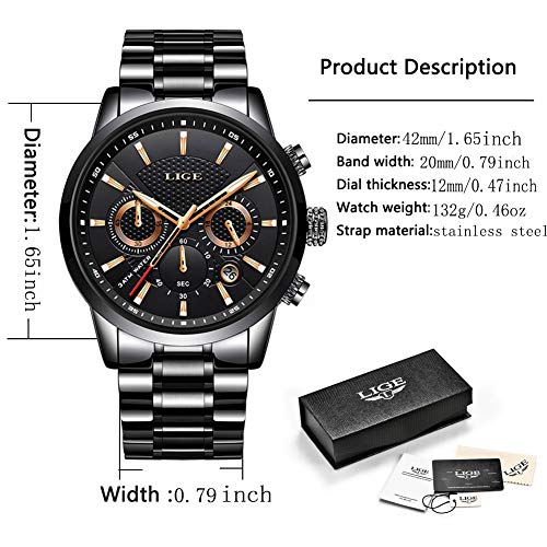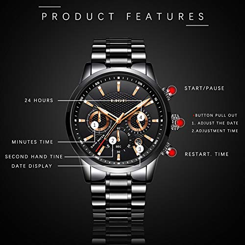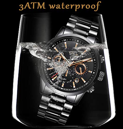 ⌚Diseño único y elegante: todos los subdiales y botones son funcionales. Espesor y cómodo reloj negro de acero inoxidable banda nunca se desvanecerá (se enviará herramienta DIY puede ajustar la longitud de la correa)
