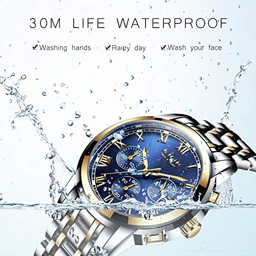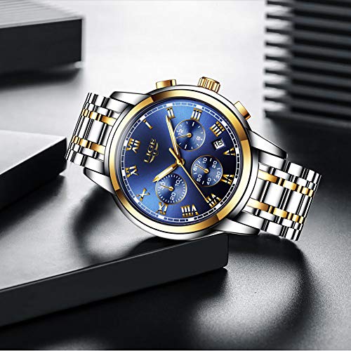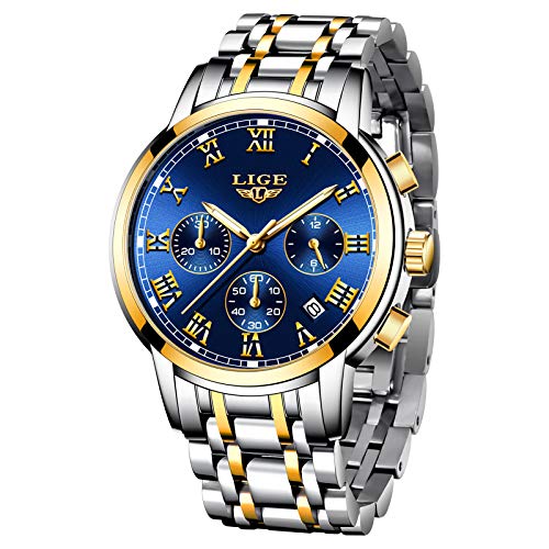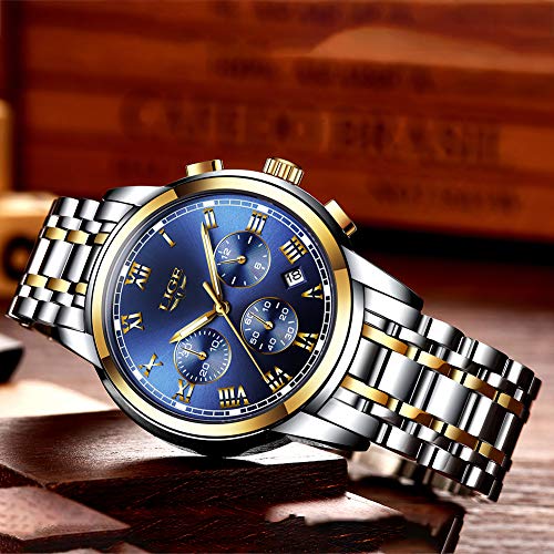 LIGE Relojes para Hombres Acero Inoxidable Impermeable Analógico de Cuarzo Cronógrafo Esfera Azul Grande Fecha Moda Casual Relojes de Pulsera