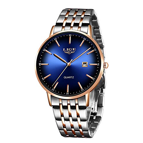 Reloj para hombre, el mejor regalo: el reloj para hombre LIGE es adecuado para el uso diario en interiores y actividades al aire libre o citas, a ti mismo, a tu marido / novio, adolescente/estudiante, a tus compañeros de trabajo, pareja, a tu padre, reloj de hombre de alta calidad, sin duda, un excelente regalo.