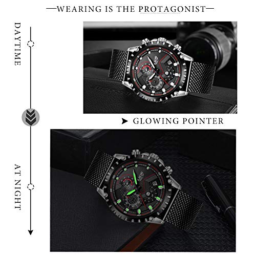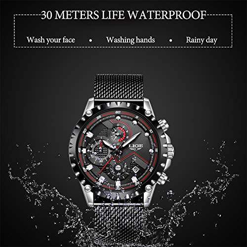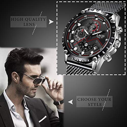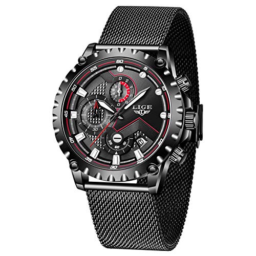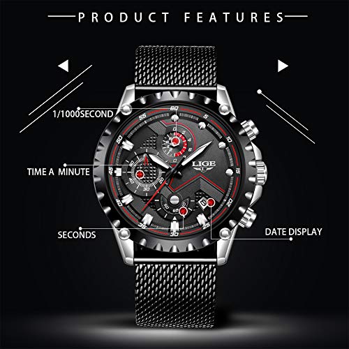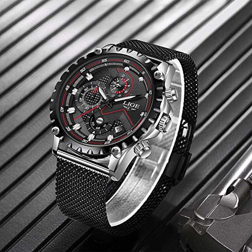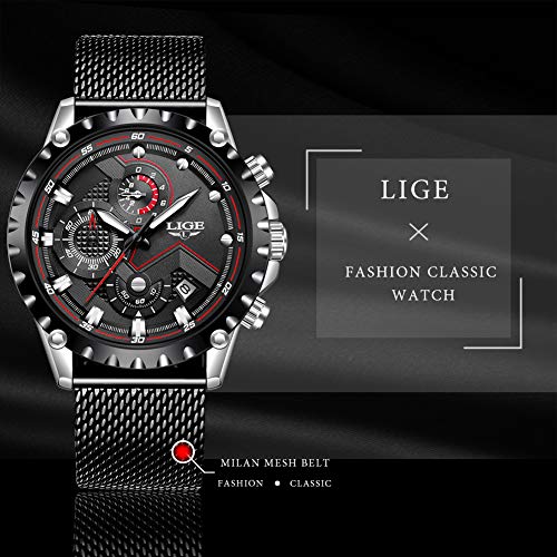 Reloj LIGE para Hombre Deporte Cronógrafo Analógico Cuarzo Impermeable Relojes de Pulsera con Correa de Acero Inoxidable