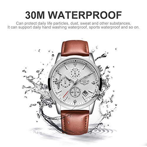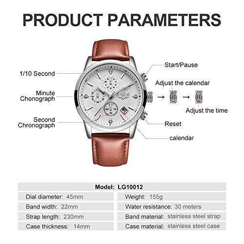 √ 【Material del reloj LIGE】 -Carcasa de acero inoxidable de alta calidad que nunca se empañará ni se oxidará, correa de cuero de alta calidad para un uso cómodo.