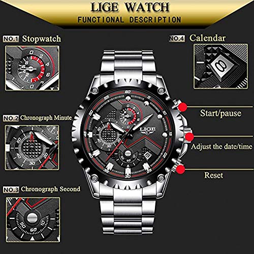 Diseño multifunción: Un reloj completo, con cronómetro, cronógrafo, calendario, movimiento de cuarzo japonés, un regalo para familiares, amigos o para usted mismo.