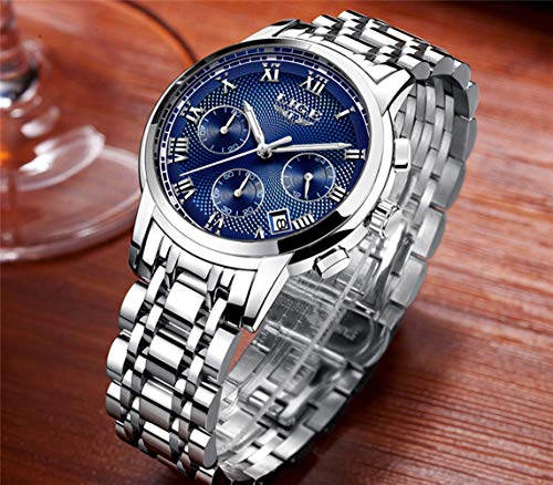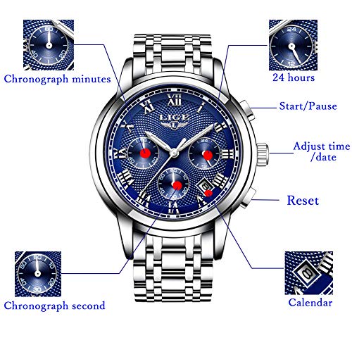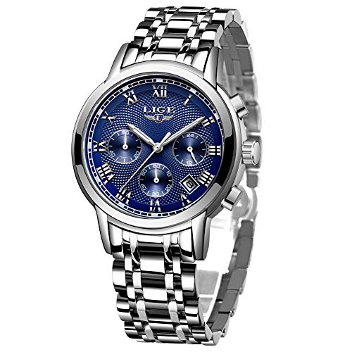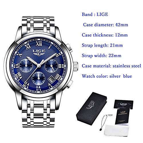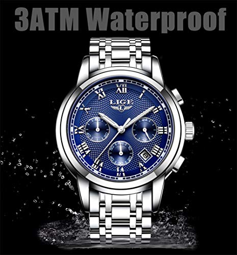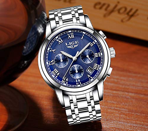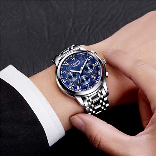 Relojes para Hombres Impermeable Acero Inoxidable Reloj Analógico de Cuarzo para Hombre Masculino Marca LIGE Vestido de Negocios Reloj de Pulsera Hombre Reloj Azul Dorado