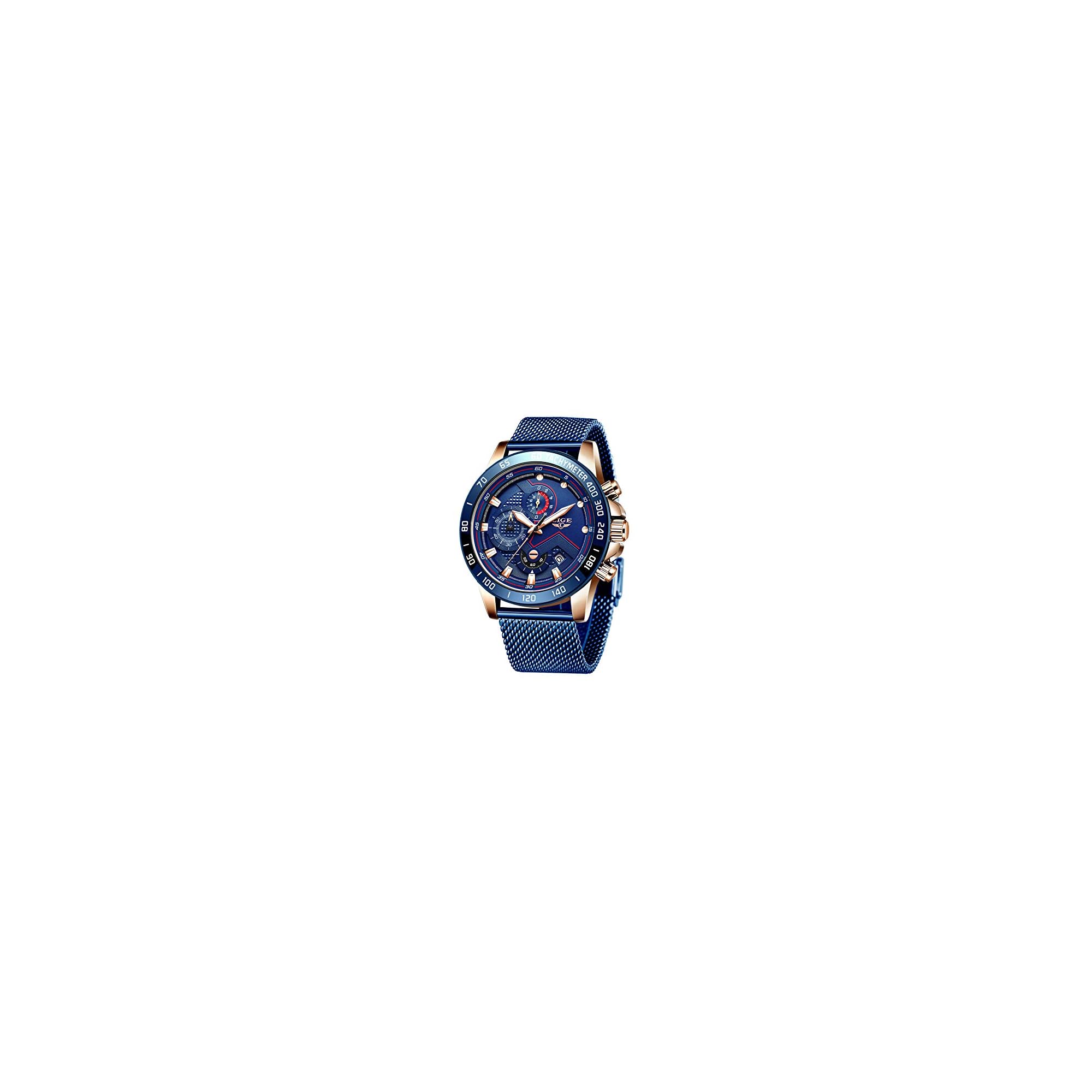 Relojes para Hombres,LIGE Acero Inoxidable Impermeable Reloj Analógico de Cuarzo Cronógrafo Banda de Malla Milanesa Esfera Fecha Moda Casual Relojes de Pulsera…